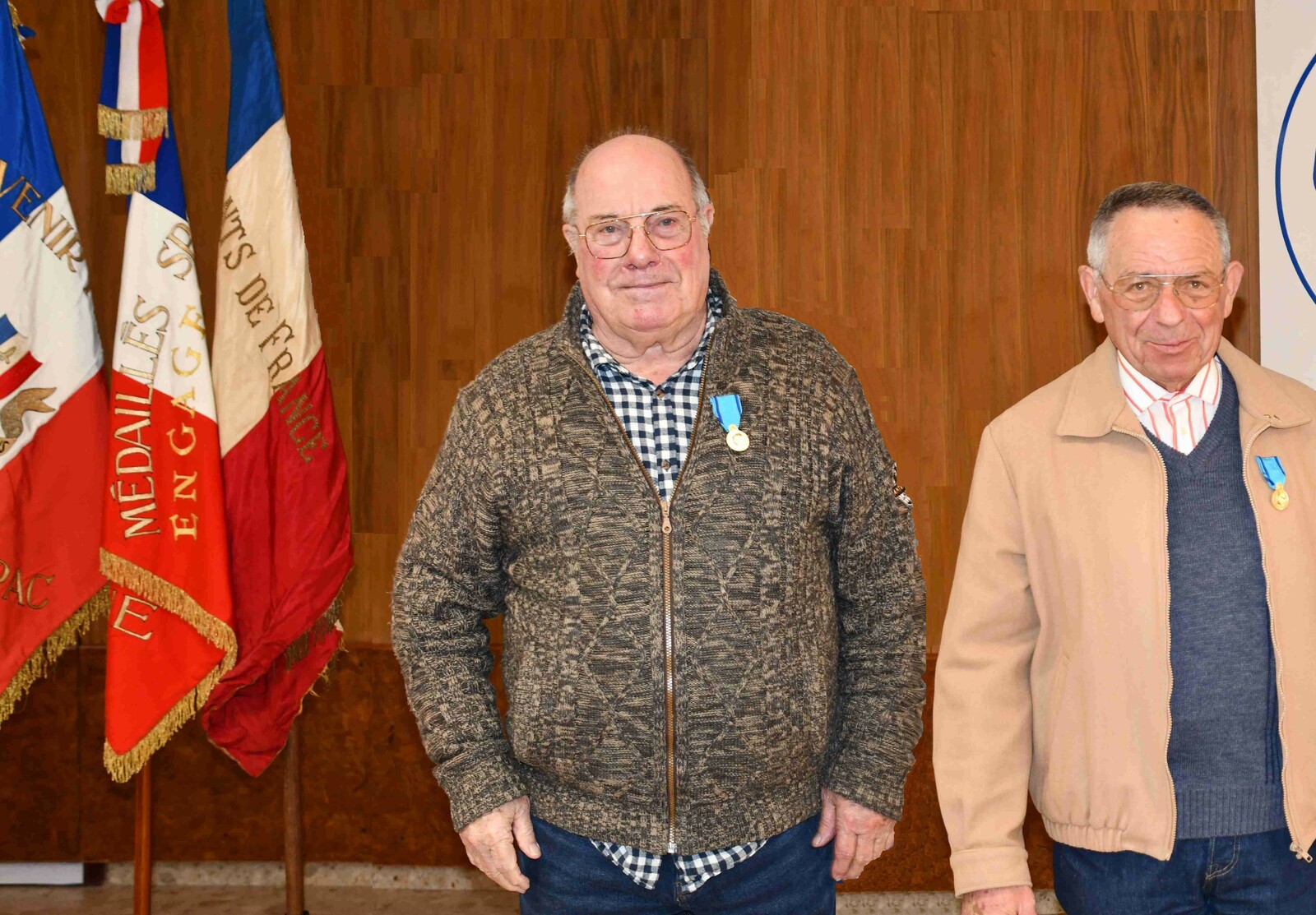 M. René BERNARD et M. Daniel VINCENT sont deux anciens parachutistes porte-drapeaux dans leur commune. Ils ont reçu la médaille de bronze au titre de la promotion Jeunesse Sport et Engagement Associatif du 1er janvier 2026.