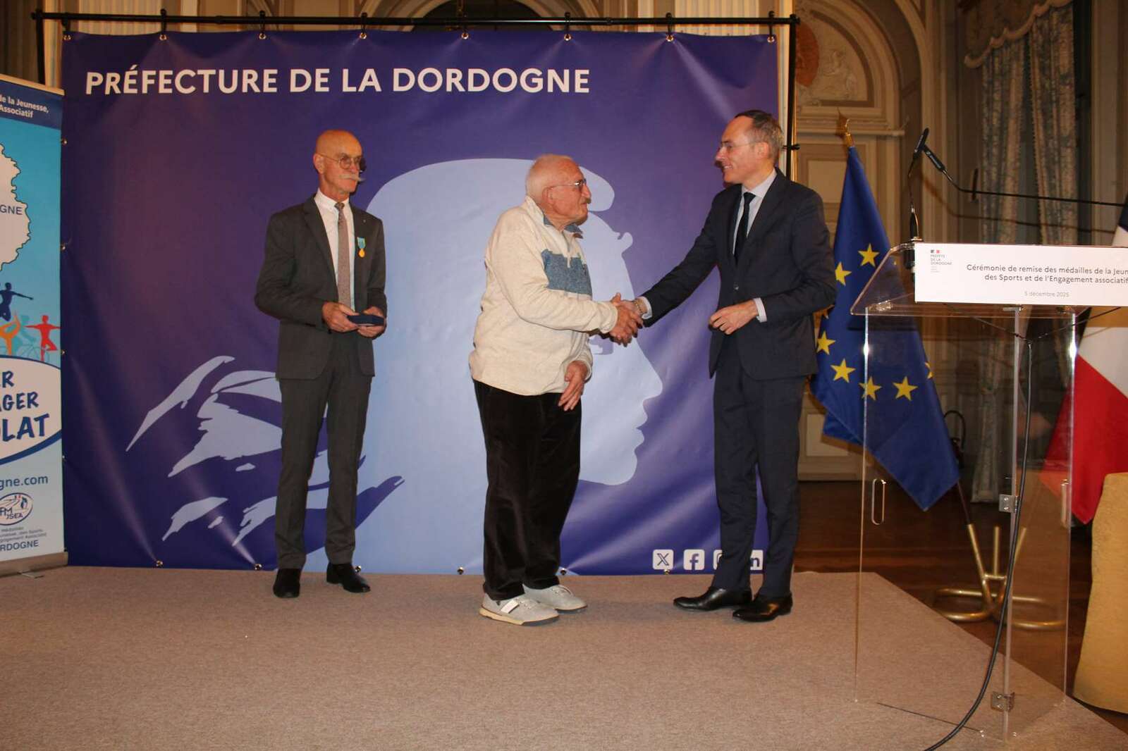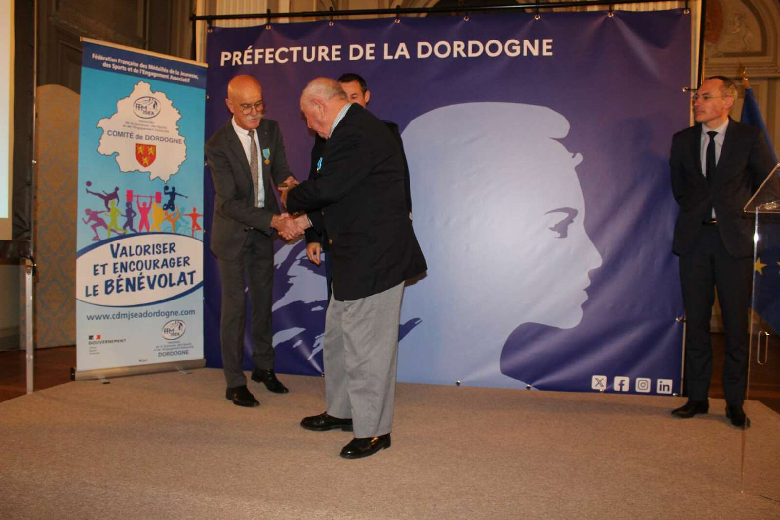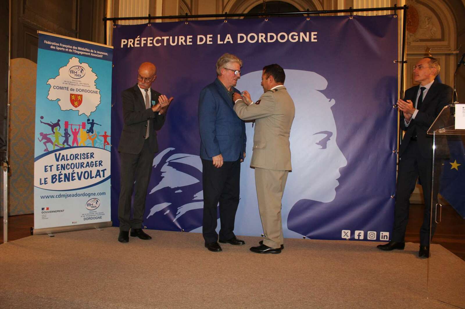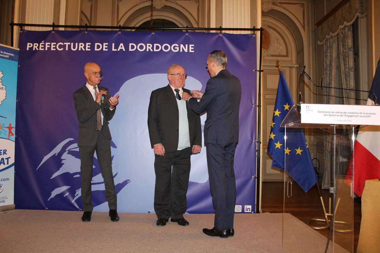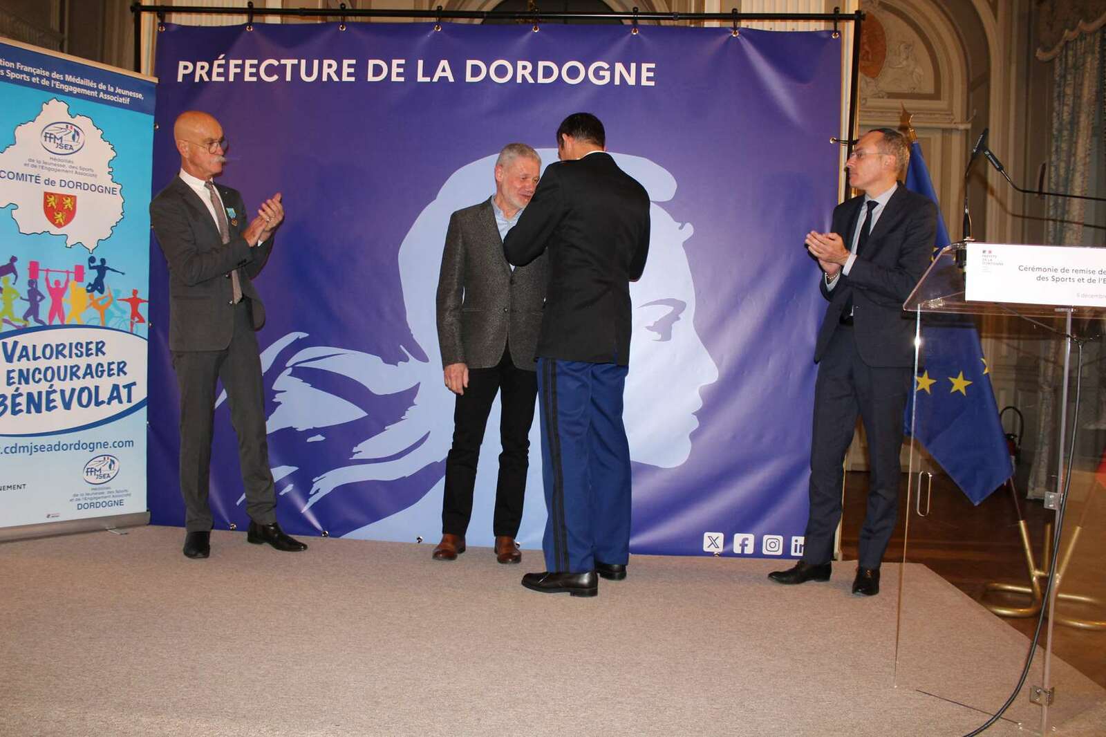 Présidée par M. Bertrand DUCROS Secrétaire général de la préfecture et Sous-préfet de l'arrondissement de Périgueux, cette soirée a permis d'honorer les récipiendaires des promotions or, argent et bronze du 1er janvier et 14 juillet 2025. Le président départemental des médaillés de la jeunesse des sports et de l'engagement associatif Francis MONTAGUT a prononcé un discours que vous pourrez consulter ci-dessous suivi message de son président fédéral André TORBIERO.