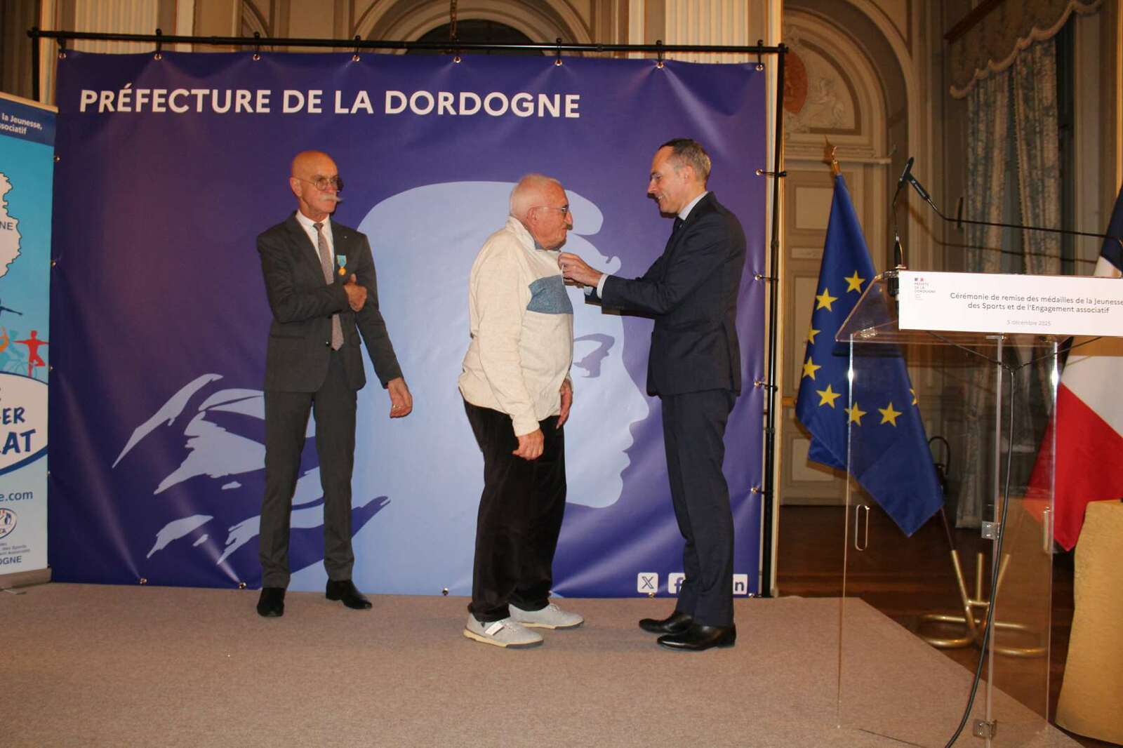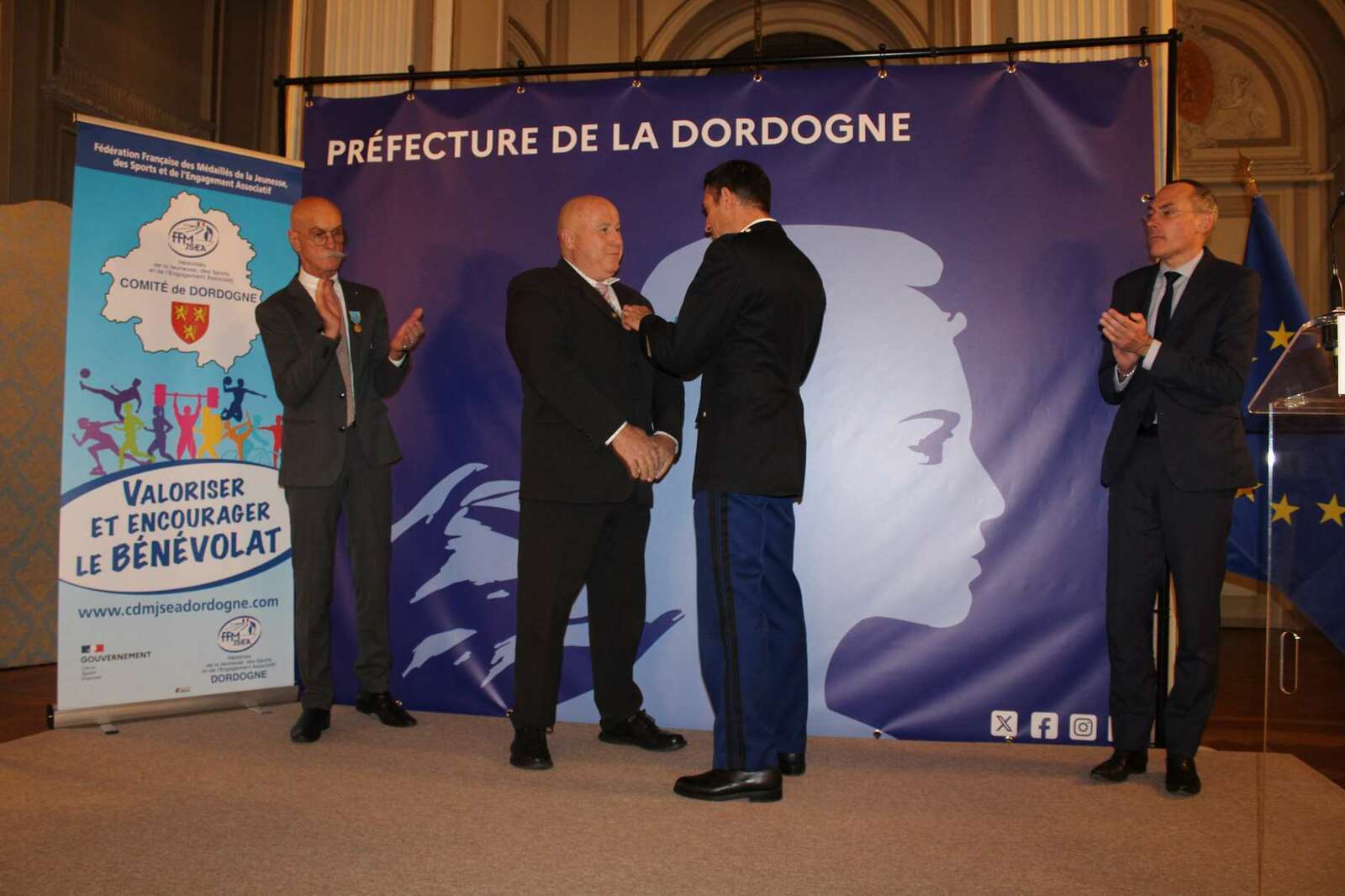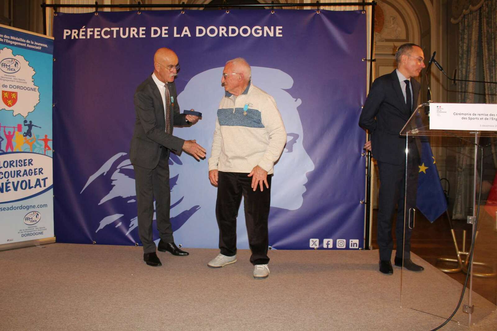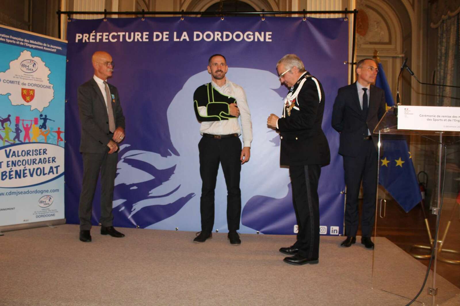 Présidée par M. Bertrand DUCROS Secrétaire général de la préfecture et Sous-préfet de l'arrondissement de Périgueux, cette soirée a permis d'honorer les récipiendaires des promotions or, argent et bronze du 1er janvier et 14 juillet 2025. Le président départemental des médaillés de la jeunesse des sports et de l'engagement associatif Francis MONTAGUT a prononcé un discours que vous pourrez consulter ci-dessous suivi message de son président fédéral André TORBIERO.