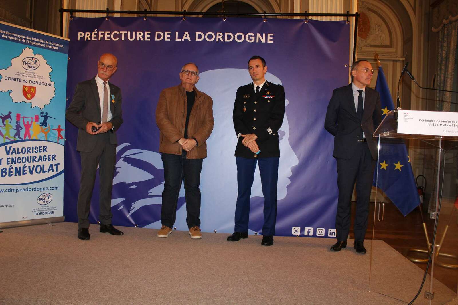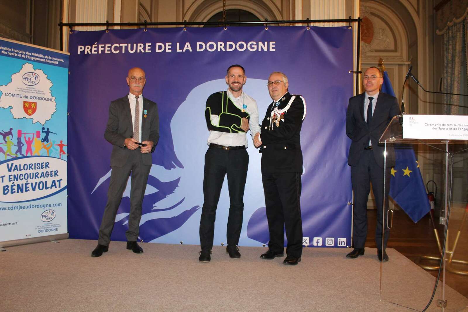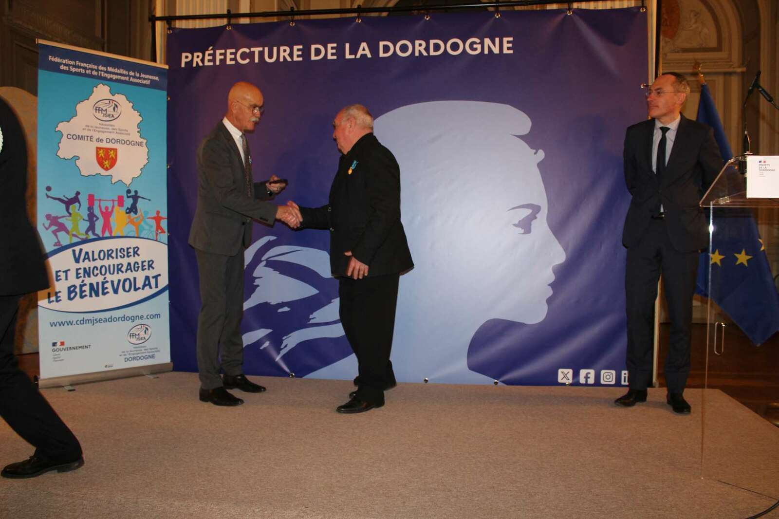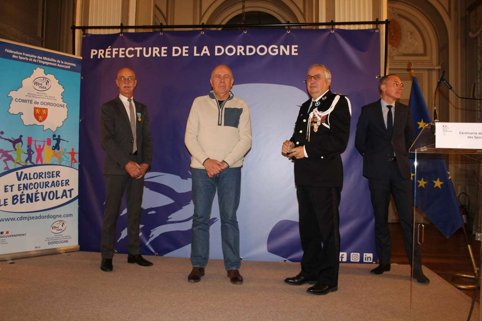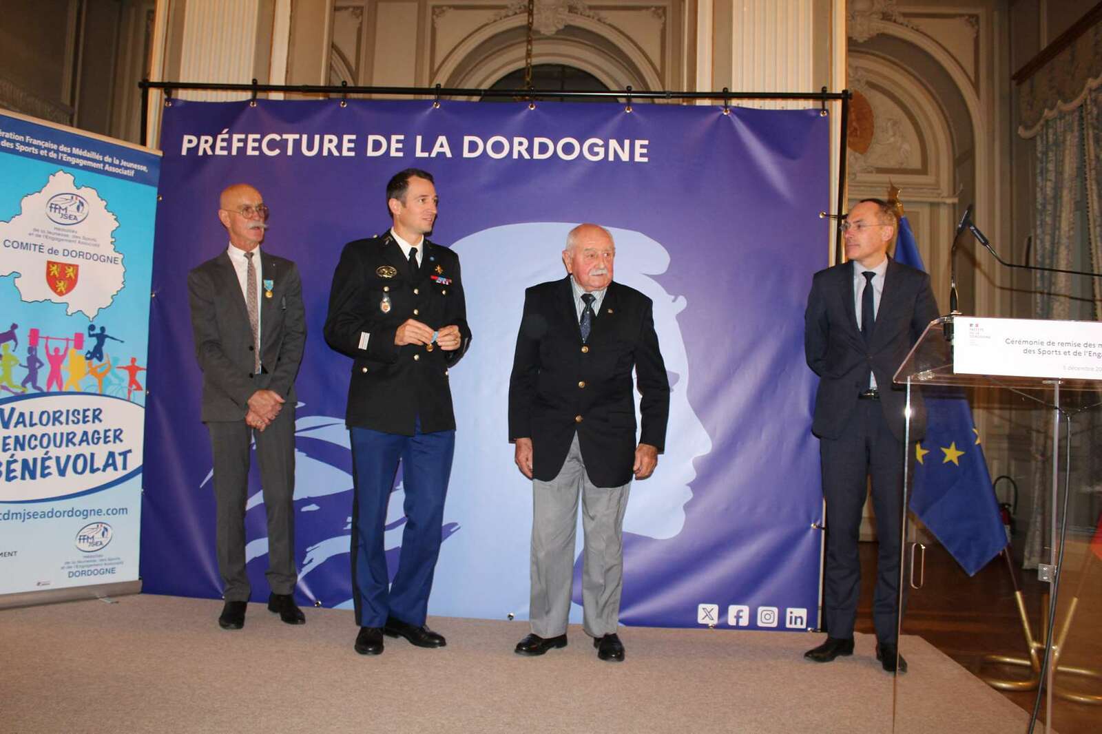 Présidée par M. Bertrand DUCROS Secrétaire général de la préfecture et Sous-préfet de l'arrondissement de Périgueux, cette soirée a permis d'honorer les récipiendaires des promotions or, argent et bronze du 1er janvier et 14 juillet 2025. Le président départemental des médaillés de la jeunesse des sports et de l'engagement associatif Francis MONTAGUT a prononcé un discours que vous pourrez consulter ci-dessous suivi message de son président fédéral André TORBIERO.