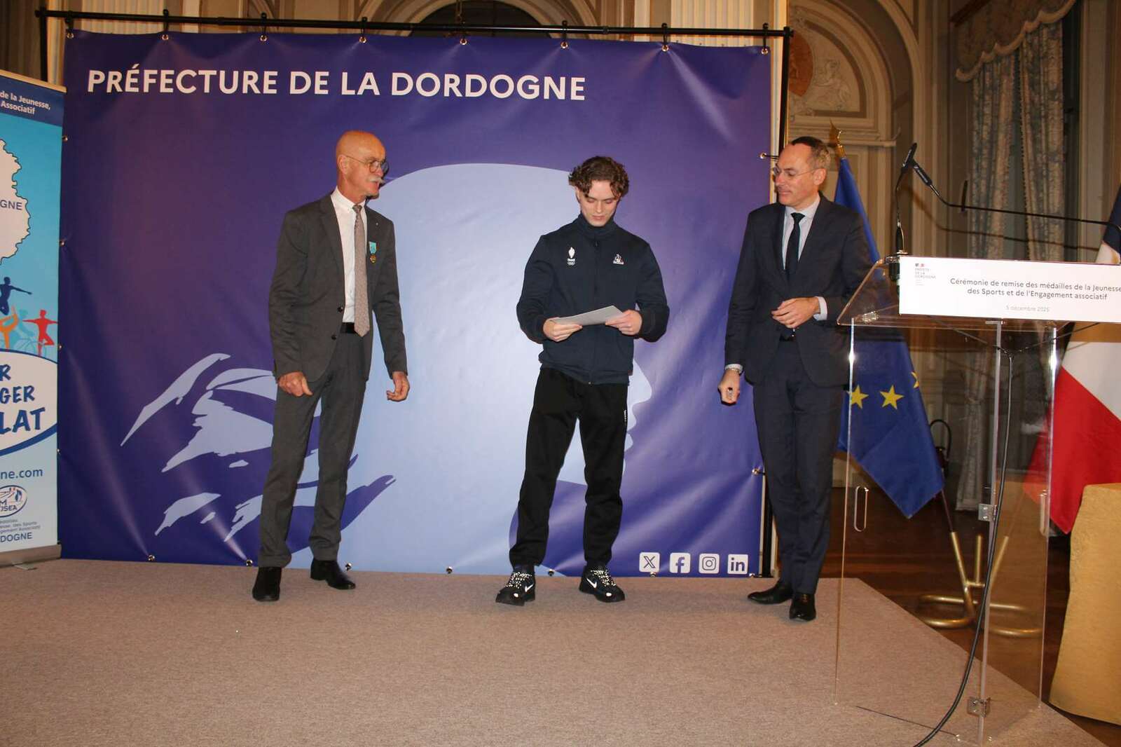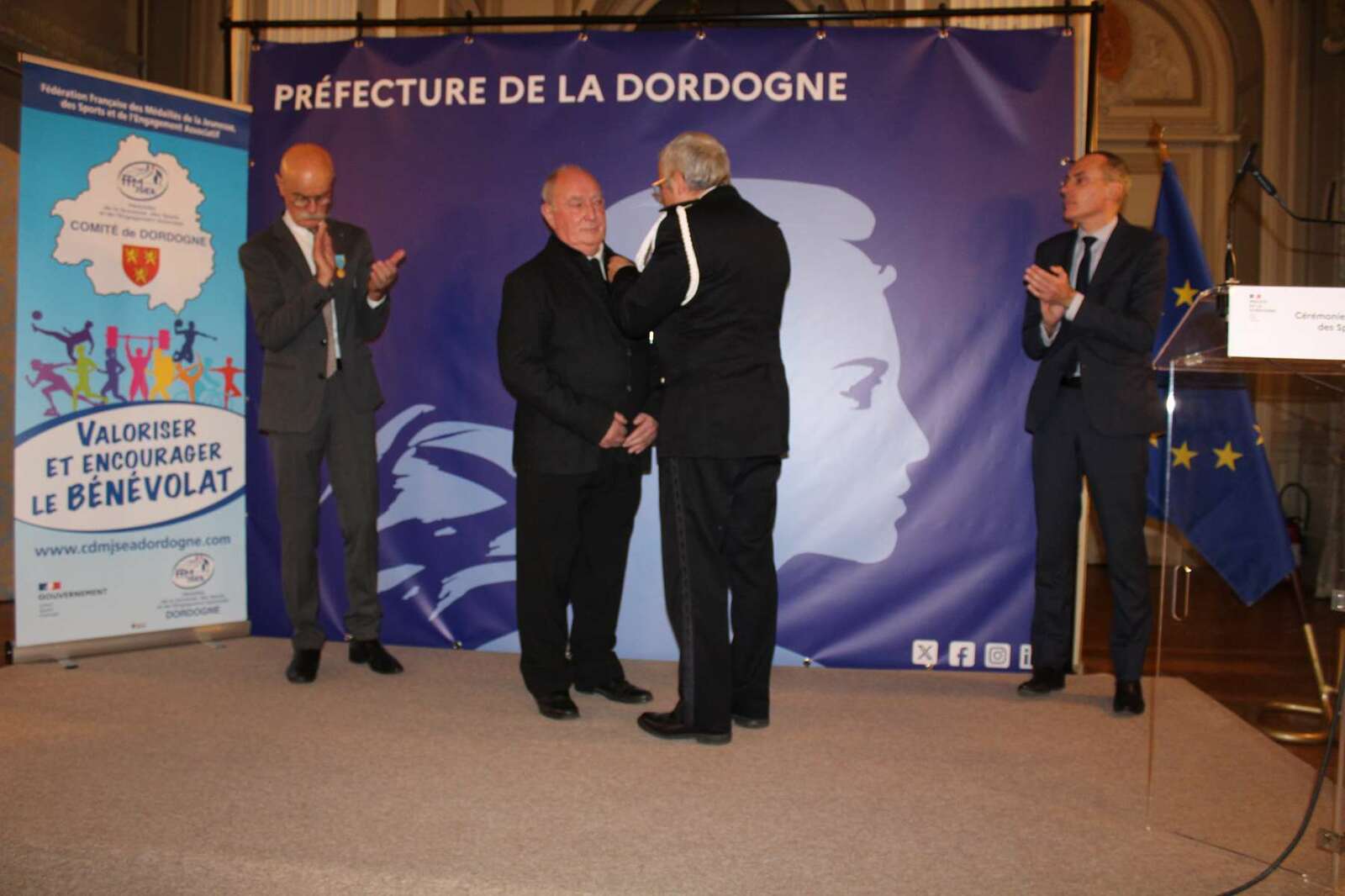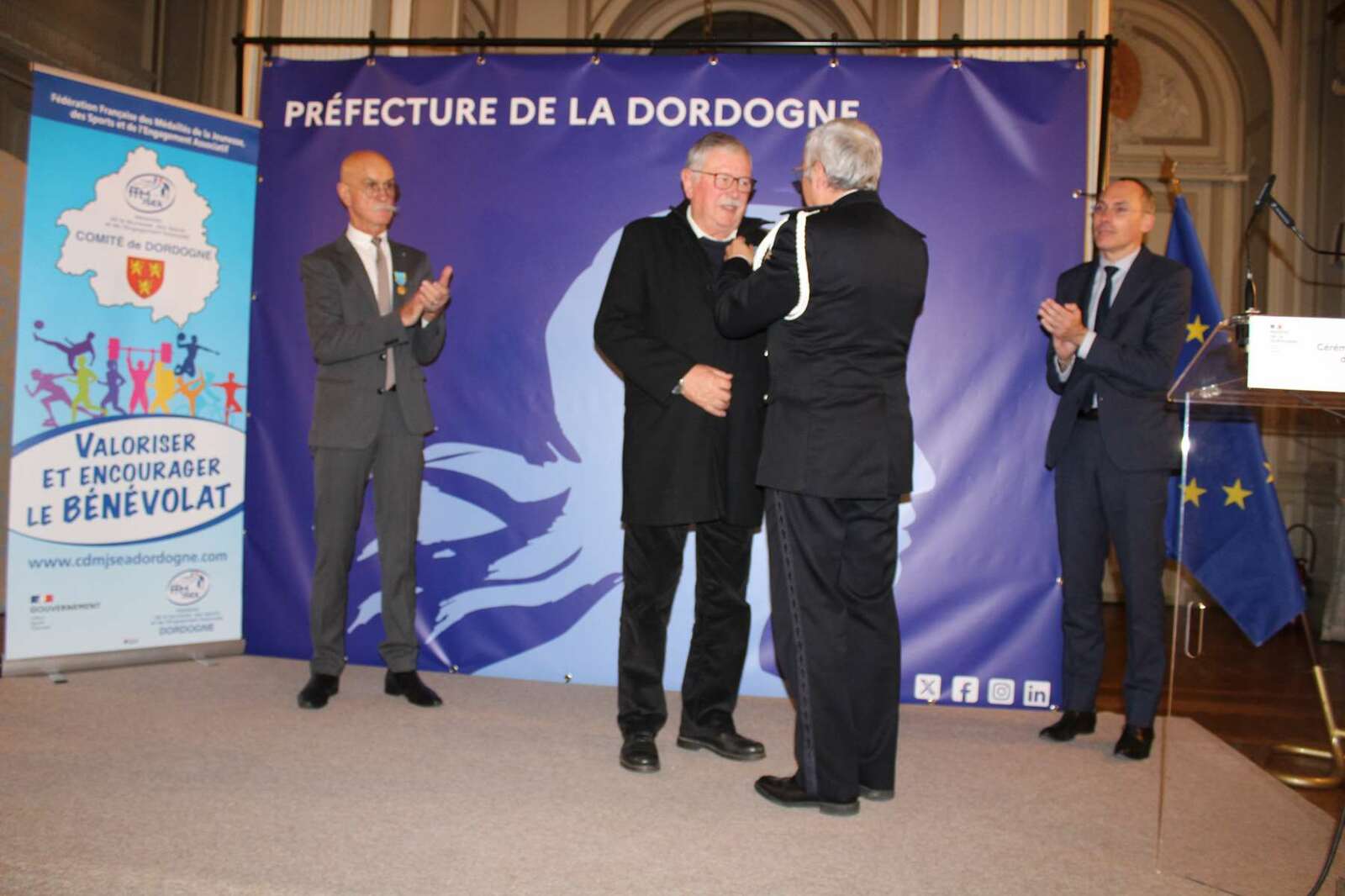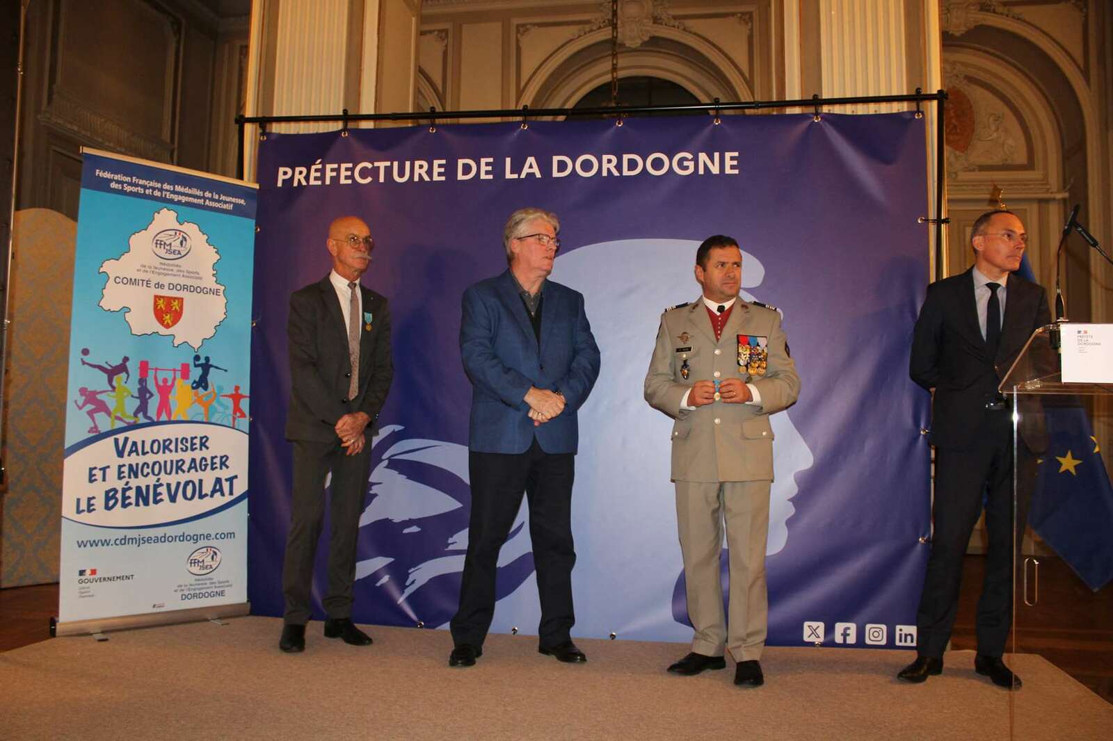Présidée par M. Bertrand DUCROS Secrétaire général de la préfecture et Sous-préfet de l'arrondissement de Périgueux, cette soirée a permis d'honorer les récipiendaires des promotions or, argent et bronze du 1er janvier et 14 juillet 2025. Le président départemental des médaillés de la jeunesse des sports et de l'engagement associatif Francis MONTAGUT a prononcé un discours que vous pourrez consulter ci-dessous suivi message de son président fédéral André TORBIERO.