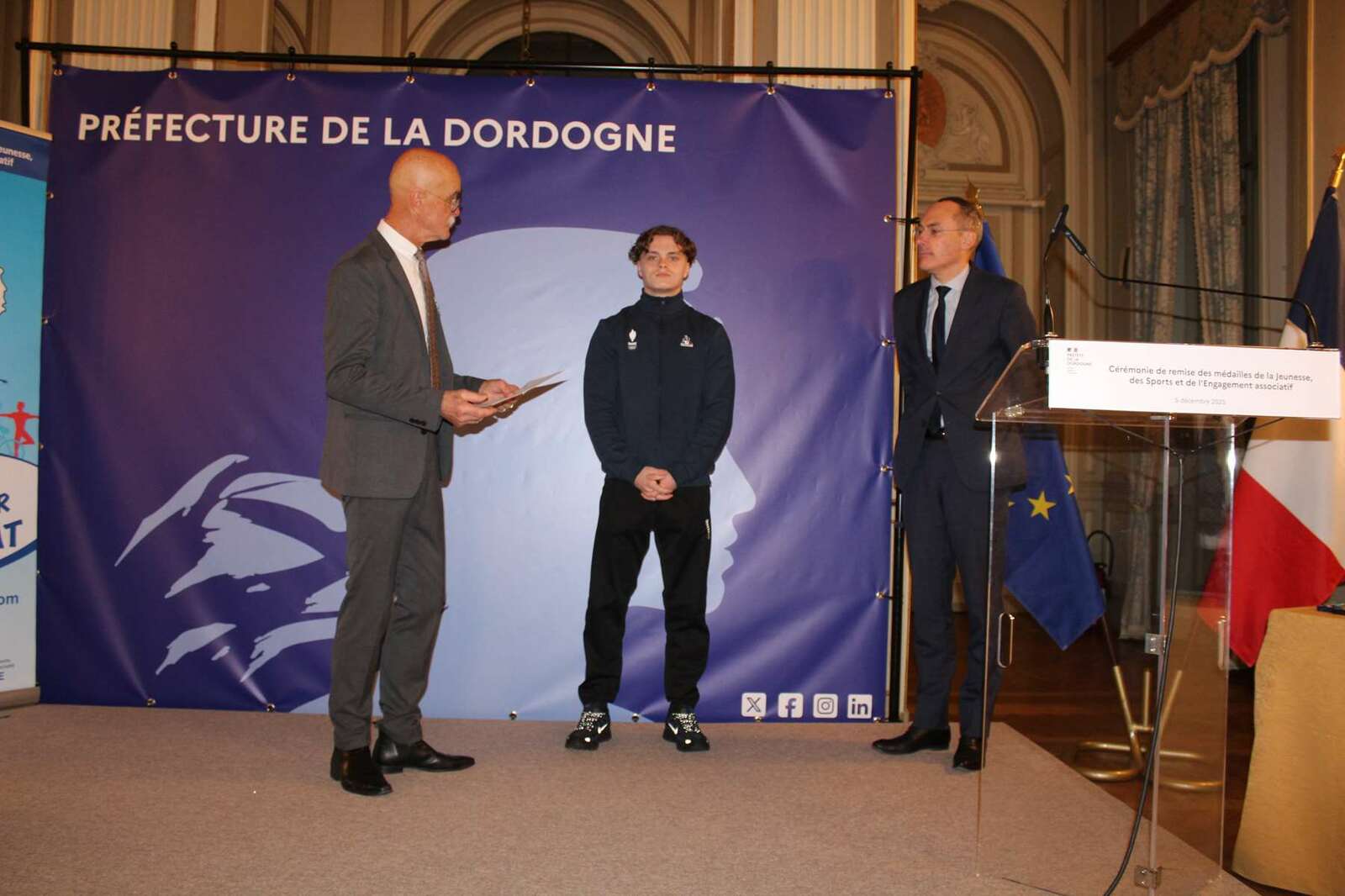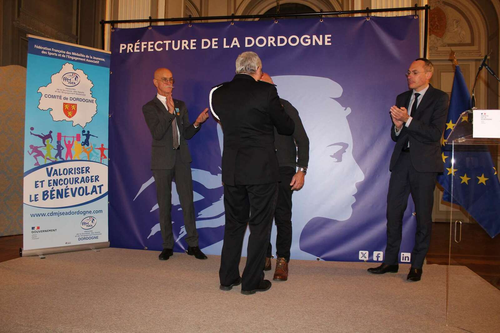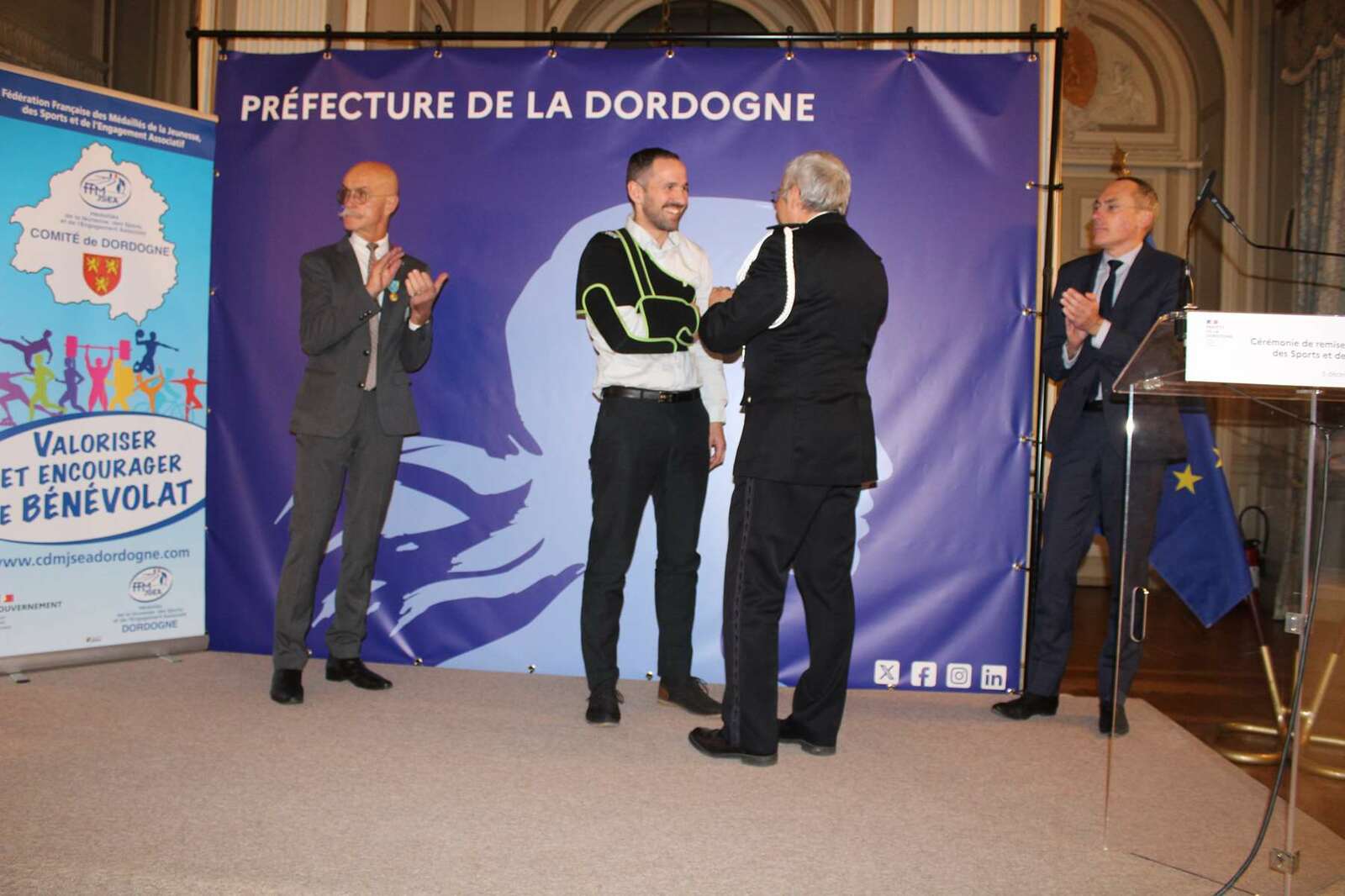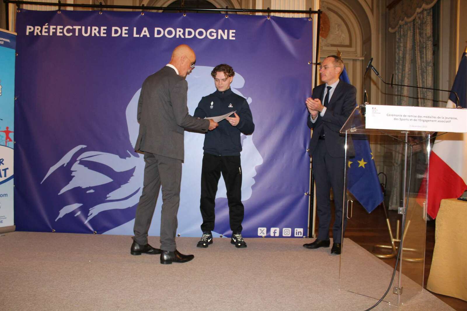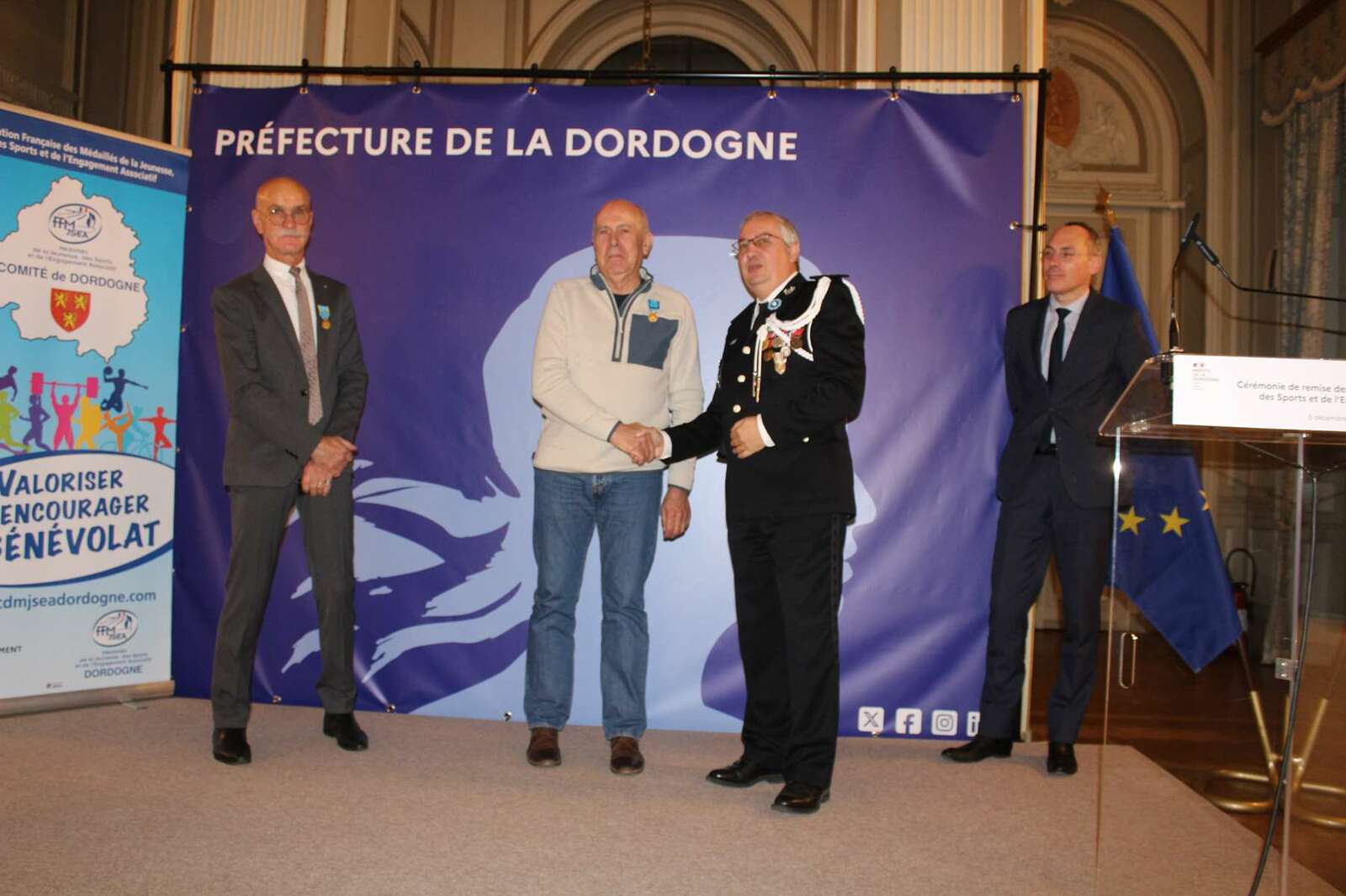 Présidée par M. Bertrand DUCROS Secrétaire général de la préfecture et Sous-préfet de l'arrondissement de Périgueux, cette soirée a permis d'honorer les récipiendaires des promotions or, argent et bronze du 1er janvier et 14 juillet 2025. Le président départemental des médaillés de la jeunesse des sports et de l'engagement associatif Francis MONTAGUT a prononcé un discours que vous pourrez consulter ci-dessous suivi message de son président fédéral André TORBIERO.