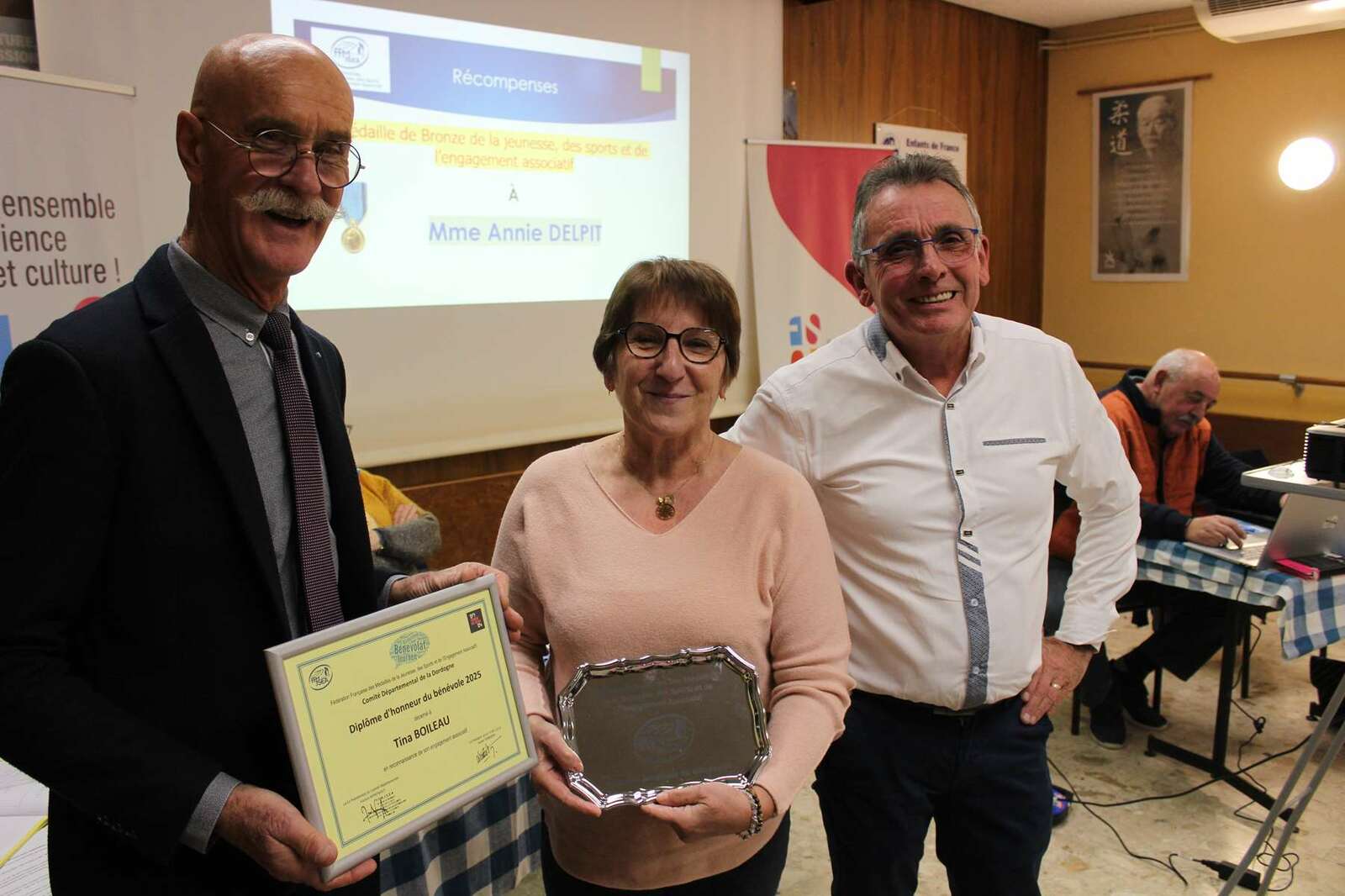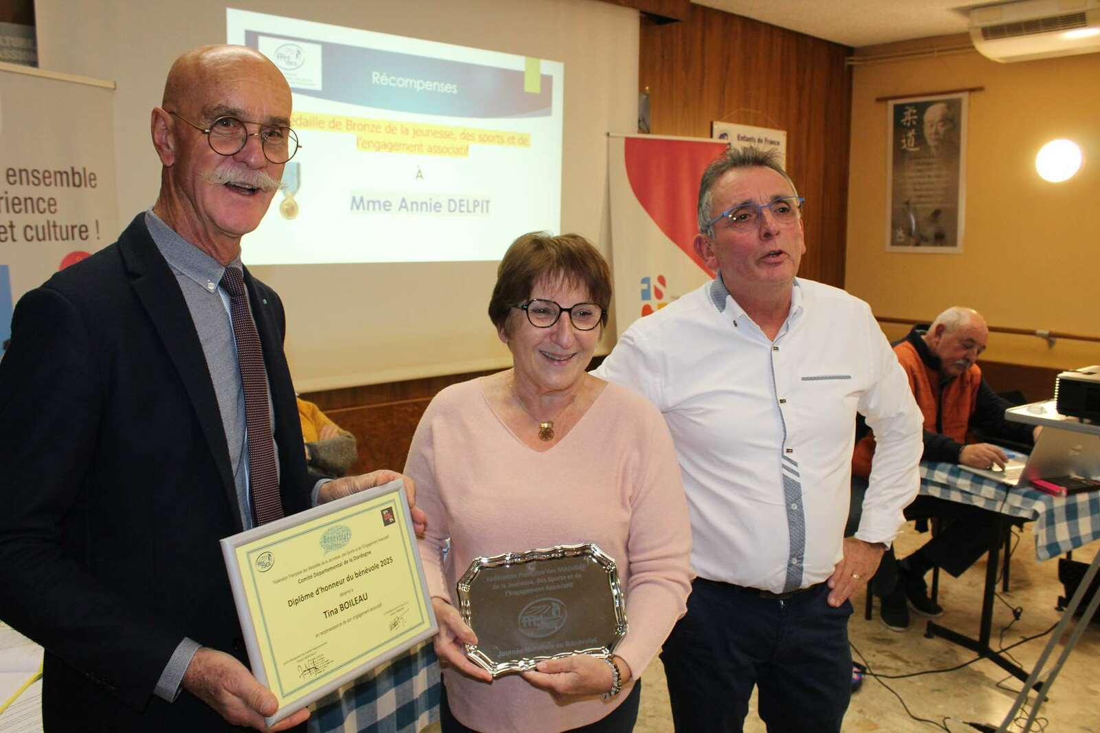 Après la présentation des différents rapports - votés à l'unanimité - preuve d'une bonne gestion et d'une belle activité pour ses sections, une sympathique cérémonie de mise à l'honneur de deux bénévoles de l'association s'est déroulée à la suite.