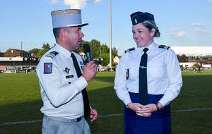 1 - Le Lieutenant-colonel Roche Délégué Militaire Départemental, organisateur de la rencontre, accueille le manager de l’équipe de France militaire féminine, la commandante Agathe Ponge.