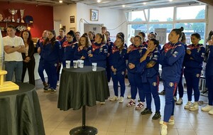 3 - Accueil au club-house de l’Union Sportive Bergeracoise. Flamme olympique et jus de fruits.