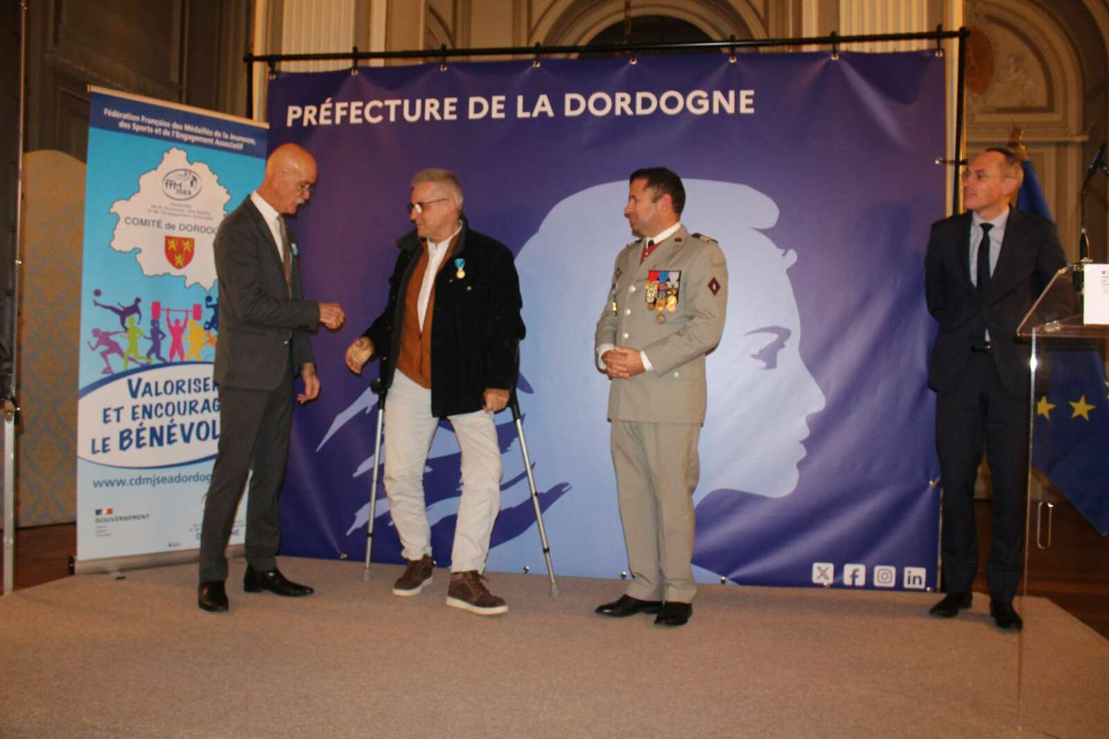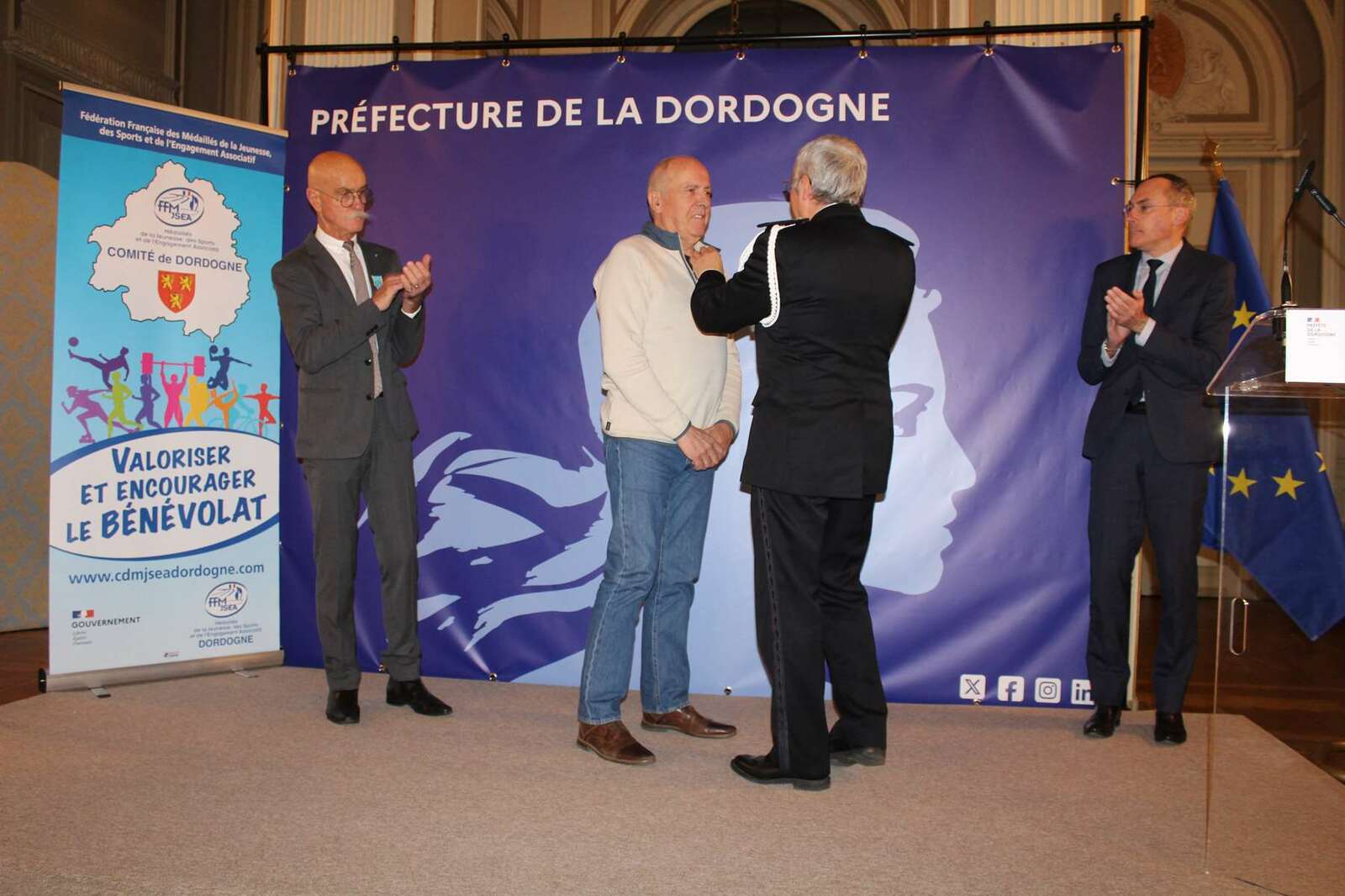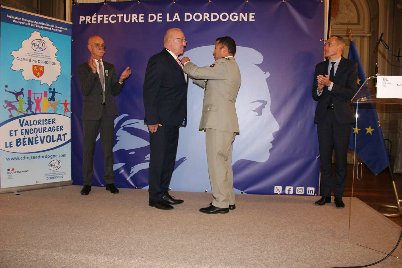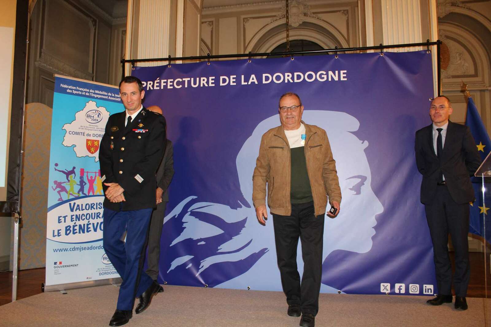 Présidée par M. Bertrand DUCROS Secrétaire général de la préfecture et Sous-préfet de l'arrondissement de Périgueux, cette soirée a permis d'honorer les récipiendaires des promotions or, argent et bronze du 1er janvier et 14 juillet 2025. Le président départemental des médaillés de la jeunesse des sports et de l'engagement associatif Francis MONTAGUT a prononcé un discours que vous pourrez consulter ci-dessous suivi message de son président fédéral André TORBIERO.