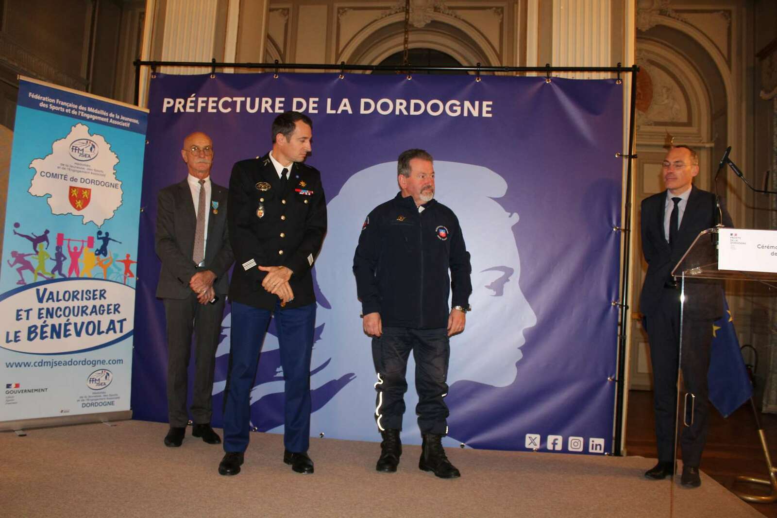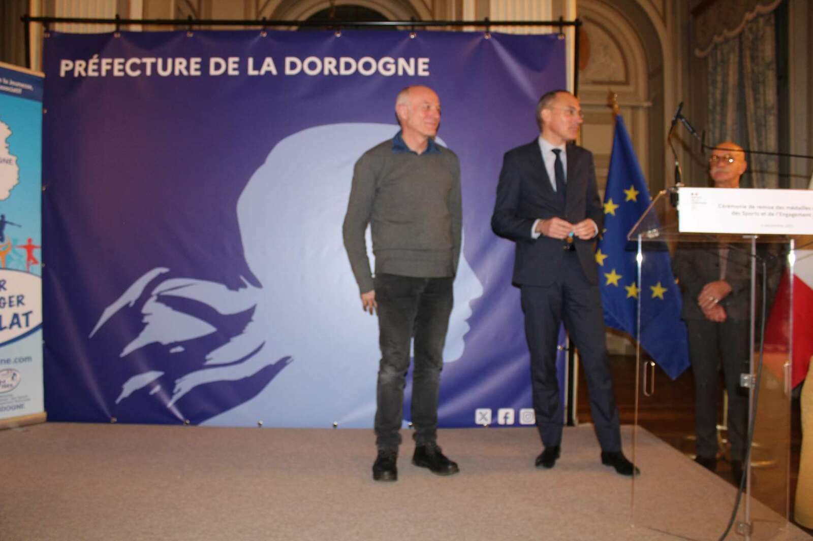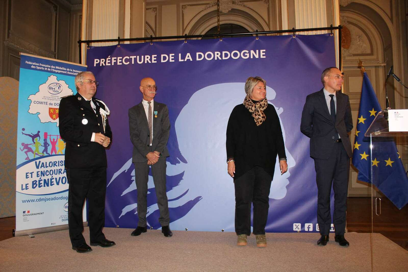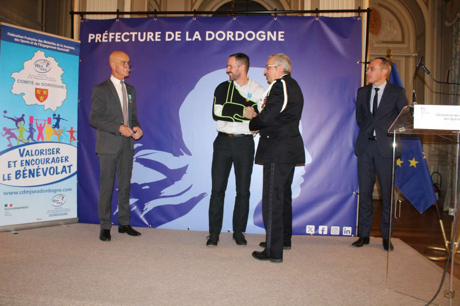Présidée par M. Bertrand DUCROS Secrétaire général de la préfecture et Sous-préfet de l'arrondissement de Périgueux, cette soirée a permis d'honorer les récipiendaires des promotions or, argent et bronze du 1er janvier et 14 juillet 2025. Le président départemental des médaillés de la jeunesse des sports et de l'engagement associatif Francis MONTAGUT a prononcé un discours que vous pourrez consulter ci-dessous suivi message de son président fédéral André TORBIERO.