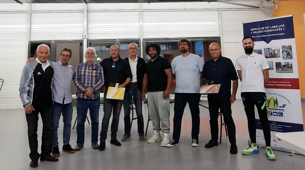 Après la remise des plaquettes de la fédération française de Boxe à Frédéric TEKFAK pour l'Or et à Serge ROUMANIE pour le Bronze en présence de Paul MASO Conseiller départemental et adjoint au maire de Périgueux, de Jacky BELON Fondateur du club, le comité départemental des médaillés de la jeunesse des sports et de l'engagement associatif représenté par Francis MONTAGUT président et Paul CIALTI membre du comité directeur a remis le diplôme et le trophée du bénévolat à Jean-Nöel FERRE et Christophe KOUASSI-ESSOFY à la grande satisfaction de l'assemblée.
